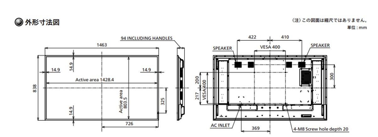 | 入力端子 | HDMI (HDCP2.2対応)×3 Dsub15P×1 USB3.0 USB2.0 TypeC |
